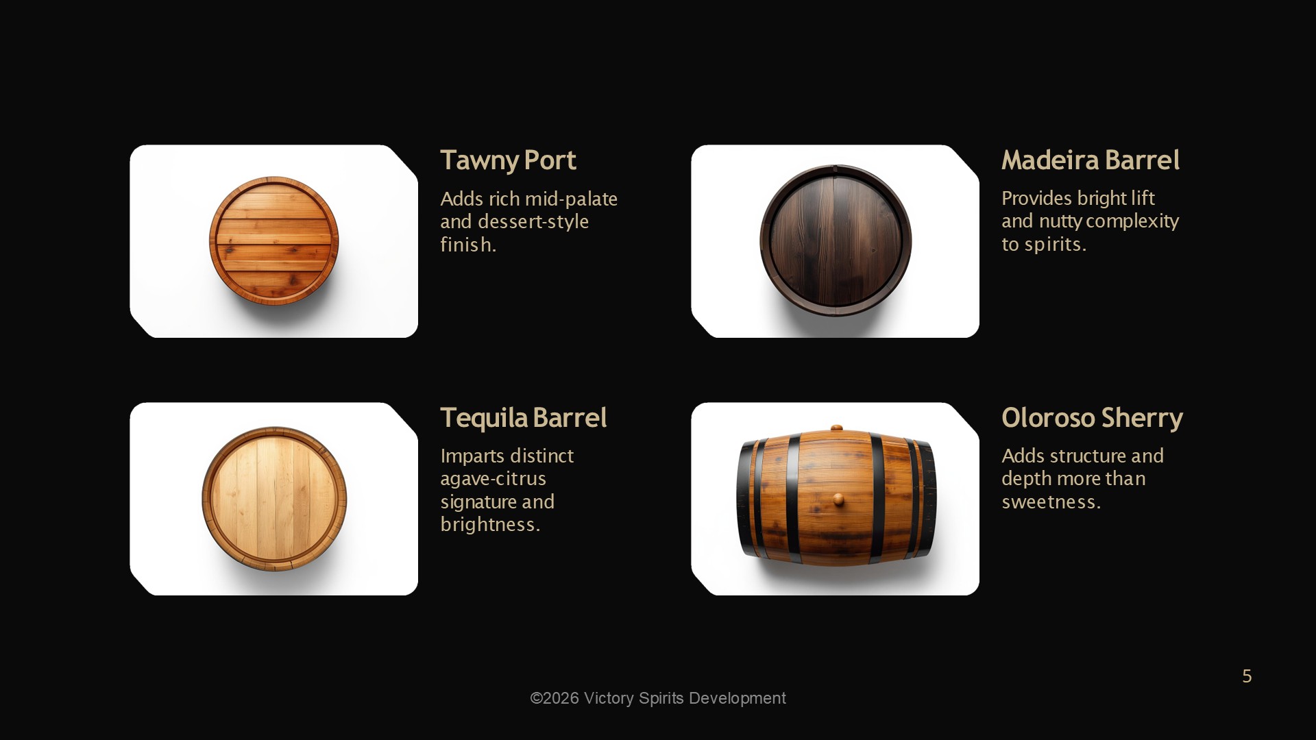 Choose from a variety of barrels to customize the aging process and achieve desired flavor profiles.